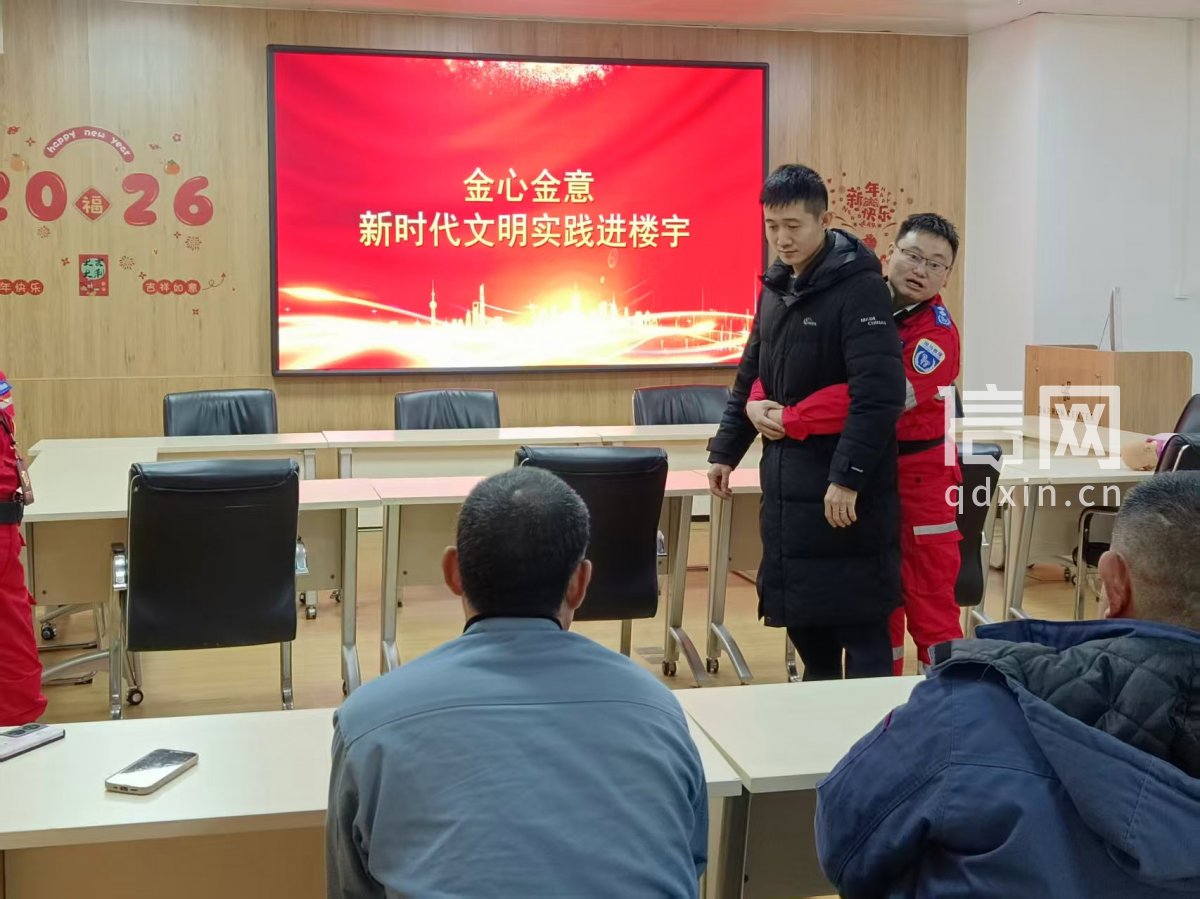 信网2月5日讯随着春节的临近,为了保障岛城市民能度过一个安全、祥和的新春佳节, 2月4日,崂山区金家岭街道“金心金意”新时代文明实践邀请青岛斑马应急救援队,为大荣中心的物业工作人员和白领进行安全应急赋能培训。此次培训是金家岭街道街道为筑牢新春安全防火墙添砖加瓦,也是新时代文明实践进楼宇的重要举措。